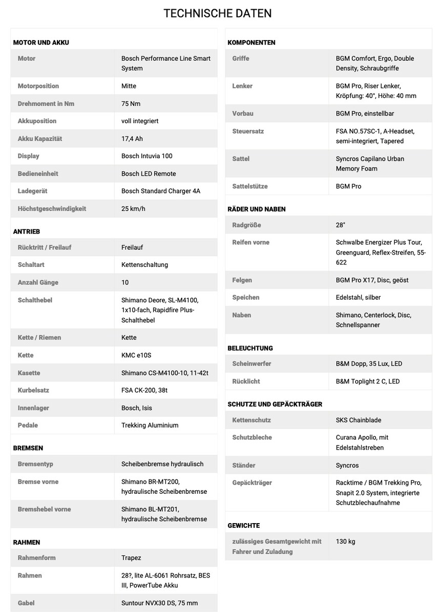 Zur Ausstattung des Bergamont E-Bikes gehört unter anderem das weit verbreitete Bosch Performance Line Smart System mit einem Drehmoment von bis zu 75Nm. Der Mittelmotor wird von einem 625Wh-Akku mit Energie versorgt, bei der Kettenschaltung setzt das E-Horizon Edition 6 auf die Shimano Deore Gruppe mit 10 Gängen. Beachtet werden sollte in jedem Fall das Gewicht des Bergamont, welches mit 28,8 Kilogramm nämlich ziemlich hoch ausfällt und für manche Damen zu hoch sein dürfte, um es die Treppe am Bahnhof oder dem Wohngebäude hochzuschleppen. Dank seines relativ tiefen Einstiegs ist das E-Horizon Edition 6 Trekking-Bike aber trotzdem ein beachtenswertes Angebot für angehende E-Bike-Käufer.