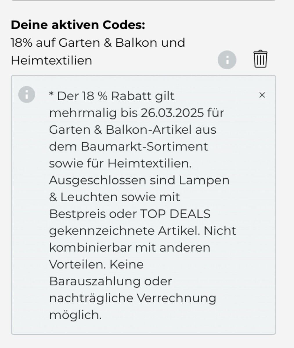 Um auf diesen Preis zu kommen, muss die "Garten & Balkon"-Aktion auf der Aktionsseite aktiviert werden, anschließend wird automatisch ein Rabatt in Höhe von 18 Prozent abgezogen. Dieser Rabatt ist allerdings nicht im Warenkorb, sondern erst im letzten Bestellschritt sichtbar, wofür zwangsläufig ein kostenloser Kundenaccount angelegt werden muss.