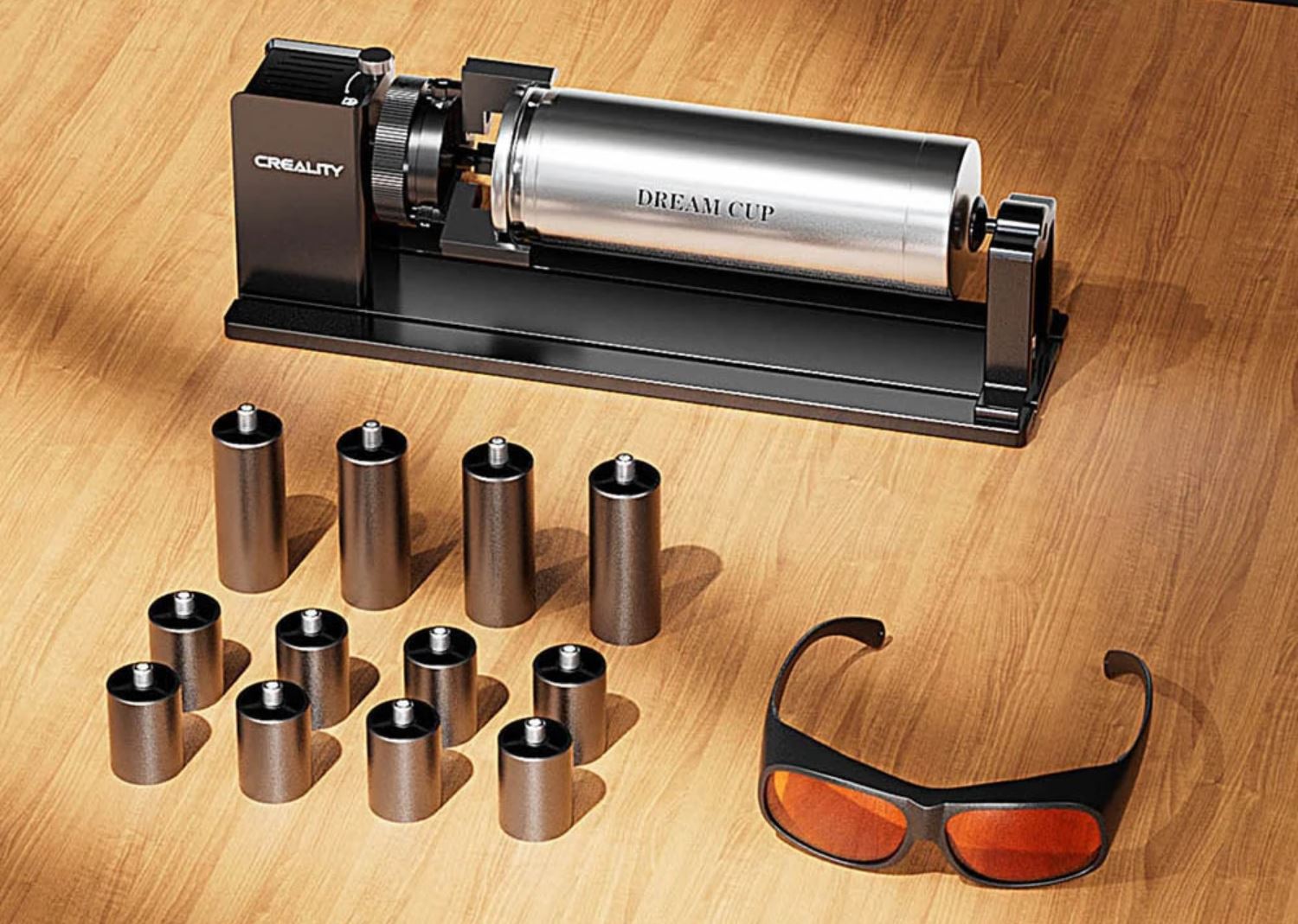 So ist unter anderem die Bearbeitung von Baseballs, Stiften, Ringen, Thermosbechern und mehr mit dem Lasergravierer umsetzbar. Die Laser-Rotationsrolle ist offiziell mit Creality-Lasersystemen kompatibel und sorgt für eine perfekte Ausrichtung, um auf gekrümmten Oberflächen verzerrungsfreie Gravuren zu ermöglichen. Geliefert wird sie mit dem erforderlichen Zubehör sowie einer Schutzbrille