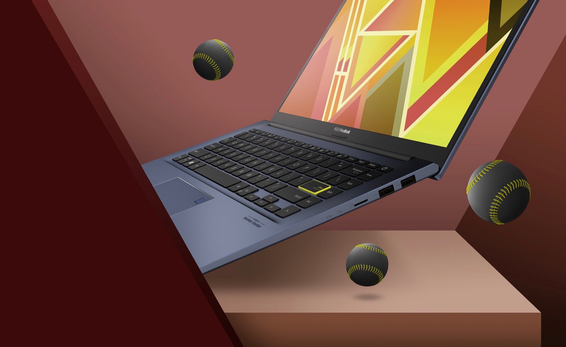 Asus verbaut einen 42 Wh fassenden Akku in das 1,9 Zentimeter dünne, 1,4 Kilogramm leichte Gehäuse. Das Notebook wird mit Windows 10 ausgeliefert, das Update auf Windows 11 ist kostenlos. Das Vivobook S14 bietet einige praktische Features, wie etwa den Nummernblock, der im Trackpad eingeblendet werden kann, oder auch das ErgoLift-Scharnier, das die Tastatur automatisch ein wenig anwinkelt.