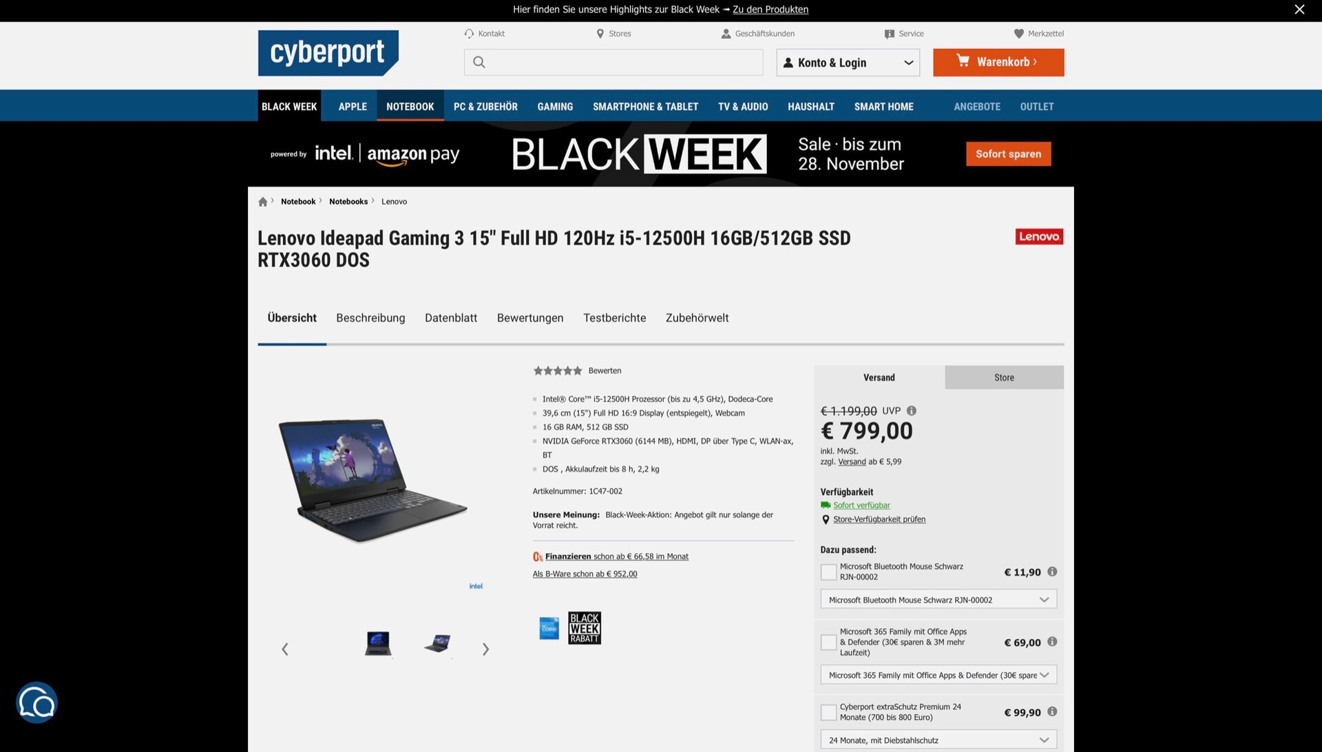 Im Rahmen der diesjährigen Black Friday Angebote wird das Lenovo IdeaPad Gaming 3 bei Cyberport für nur 799 Euro angeboten. Im Preisvergleich kostet dieses Modell ansonsten mindestens 999 Euro, die unverbindliche Preisempfehlung liegt bei 1.199 Euro. Zum neuen Allzeit-Bestpreis bietet das Gaming-Notebook ein attraktives Preis-Leistungs-Verhältnis.
