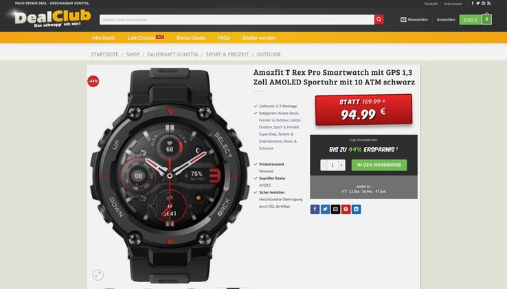 Aktuell gibts die Amazfit T-Rex Pro über DealClub für nur 94,99 Euro, der Versand ist innerhalb von Deutschland kostenlos. Der Verkauf erfolgt durch den Händler Avides, der sich auf den Verkauf überschüssiger Lagerbestände spezialisiert hat. Im Preisvergleich ist die Uhr ansonsten nicht unter 120 Euro zu finden. Vor dem Kauf empfiehlt es sich, unseren ausführlichen Testbericht zu lesen.