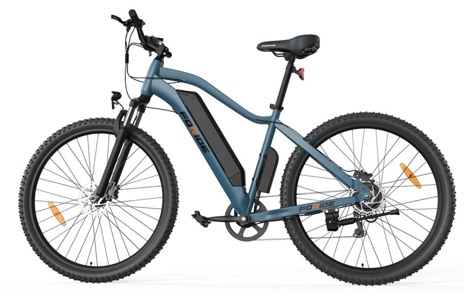 Für Komfort und Grip im Gelände sorgen die 29 Zoll großen All-Terrain-Reifen sowie eine Federgabel mit 80 mm Federweg und Sperre, die Stöße absorbiert. Hydraulische Scheibenbremsen am Foride Xtremer 3 sorgen für eine stabile Bremsleistung und kurze Bremswege. Dazu ist eine StVZO-konforme Beleuchtung verbaut. Ausgelegt ist das aktuell nur 719 Euro kostende E-Mountainbike Foride Xtremer 3 für Fahrer ab 175 cm Körpergröße.