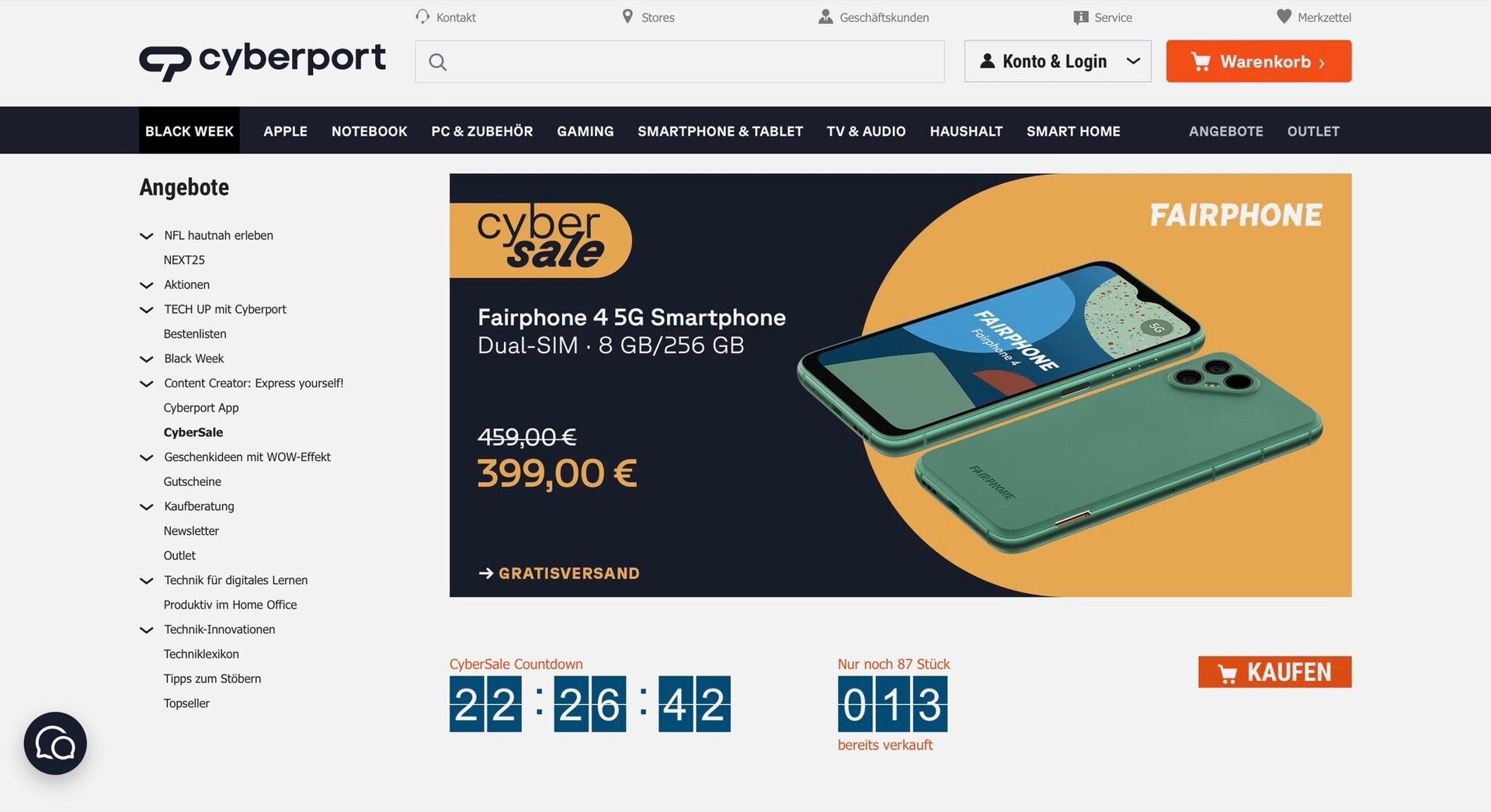 Das Fairphone 4 mit 8 GB RAM und 256 GB Speicher kann derzeit bei Cyberport für nur 399 Euro bestellt werden. Im Preisvergleich ist das Smartphone ansonsten nicht unter 459 Euro zu finden. Dabei handelt es sich um den Allzeit-Bestpreis für das Fairphone 4, allerdings ist dieses Angebot auf 100 Stück begrenzt, sodass es sich bei Interesse empfiehlt, schnell zuzugreifen.