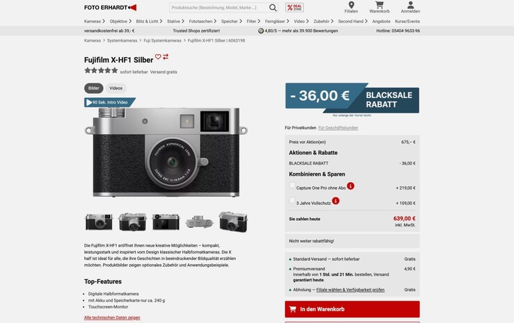 Die Fujifilm X half ist im Mai für eine unverbindliche Preisempfehlung von 799 Euro auf den Markt gekommen. Im Rahmen eines Black Friday- und Cyber Monday-Angebots wird die Kamera derzeit bei mehreren Fachhändlern, inklusive Foto Erhardt, für nur 639 Euro angeboten.