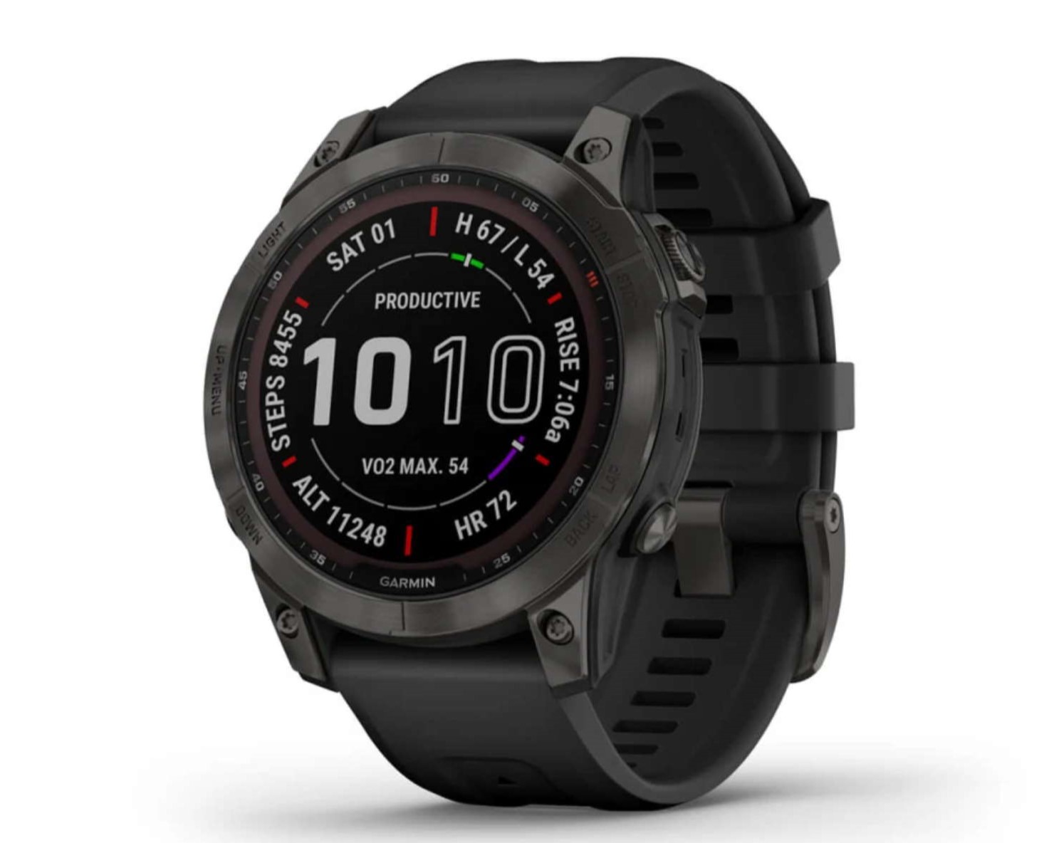 Möglich ist die Aufzeichnung der Herzfrequenzrate und der Sauerstoffsättigung sowohl bei sportlichen Aktivitäten als auch den ganzen Tag über. Das Stresslevel und auch der die Energiereserven des Körpers lassen sich anzeigen. Das GNSS-Modul unterstützt verschiedene Navigationssysteme. Verbaut ist ein 32 Gigabyte großer Speicher, auf welchem schon umfangreiches Kartenmaterial vorinstalliert ist. Auf dem Speicher lässt sich auch über Bluetooth wiederzugebende Musik speichern, wodurch ein Smartphone bei sportlichen Aktivitäten auch deshalb nicht mitgenommen werden muss.