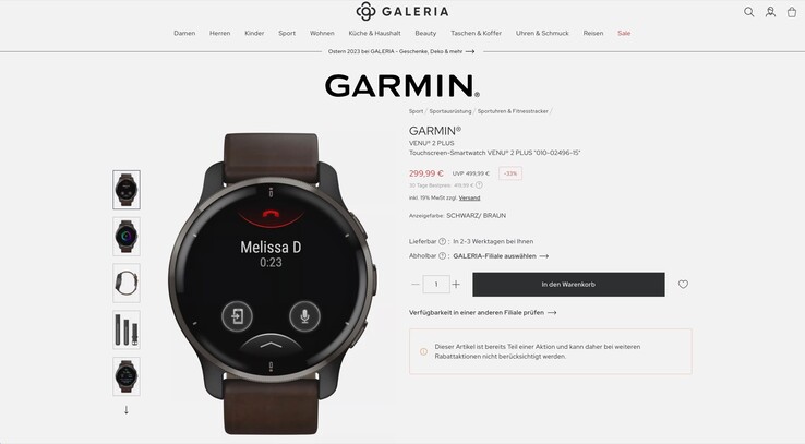 Die Garmin Venu 2 Plus kann derzeit bei Galeria für nur 299 Euro bestellt werden, mit schwarzem Gehäuse und braunem Lederarmband. Die unverbindliche Preisempfehlung dieser Version der Smartwatch liegt bei 499 Euro.