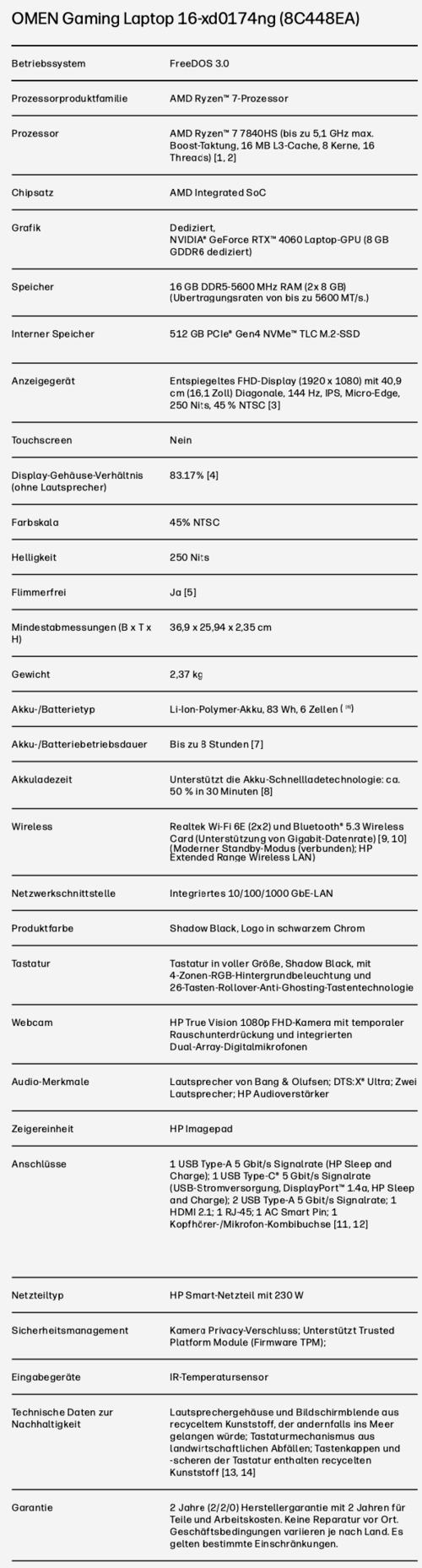 Präziser ausgedrückt handelt es sich um das Basismodell des HP Omen 16, welches mit dem AMD Ryzen 7 7840HS und der besagten Nvidia GeForce RTX 4060 ausgestattet ist. Außerdem sind 16GB RAM, eine 512GB-SSD und das 144Hz schnelle Full-HD-Display verbaut. Dank eines Deal-Rabatts von 16 Prozent ist der Gaming-Laptop nun für 906 Euro bei Alternate bestellbar, bei anderen Händlern werden mindestens 1.081 Euro für diese Ausführung des HP Omen 16 verlangt.
