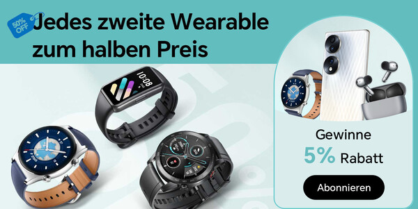 Bei den Waerables reduziert Honor die Preise für Watch GS 3, MagicWatch 2 und das Honor Band 6. So kostet die Honor Watch GS 3, die in Midnight Black, Ocean Blue oder Classic Gold erhältlich ist, in der schwarzen Modellvariante statt 219,90 Euro lediglich 179,90 Euro. Auf eBay ist die Watch GS 3 aktuell allerdings ab 147,92 Euro zu haben. Hier lohnt sich ein Preisvergleich, da die Honor-Wearables im freien Handel meist günstiger angeboten werden.