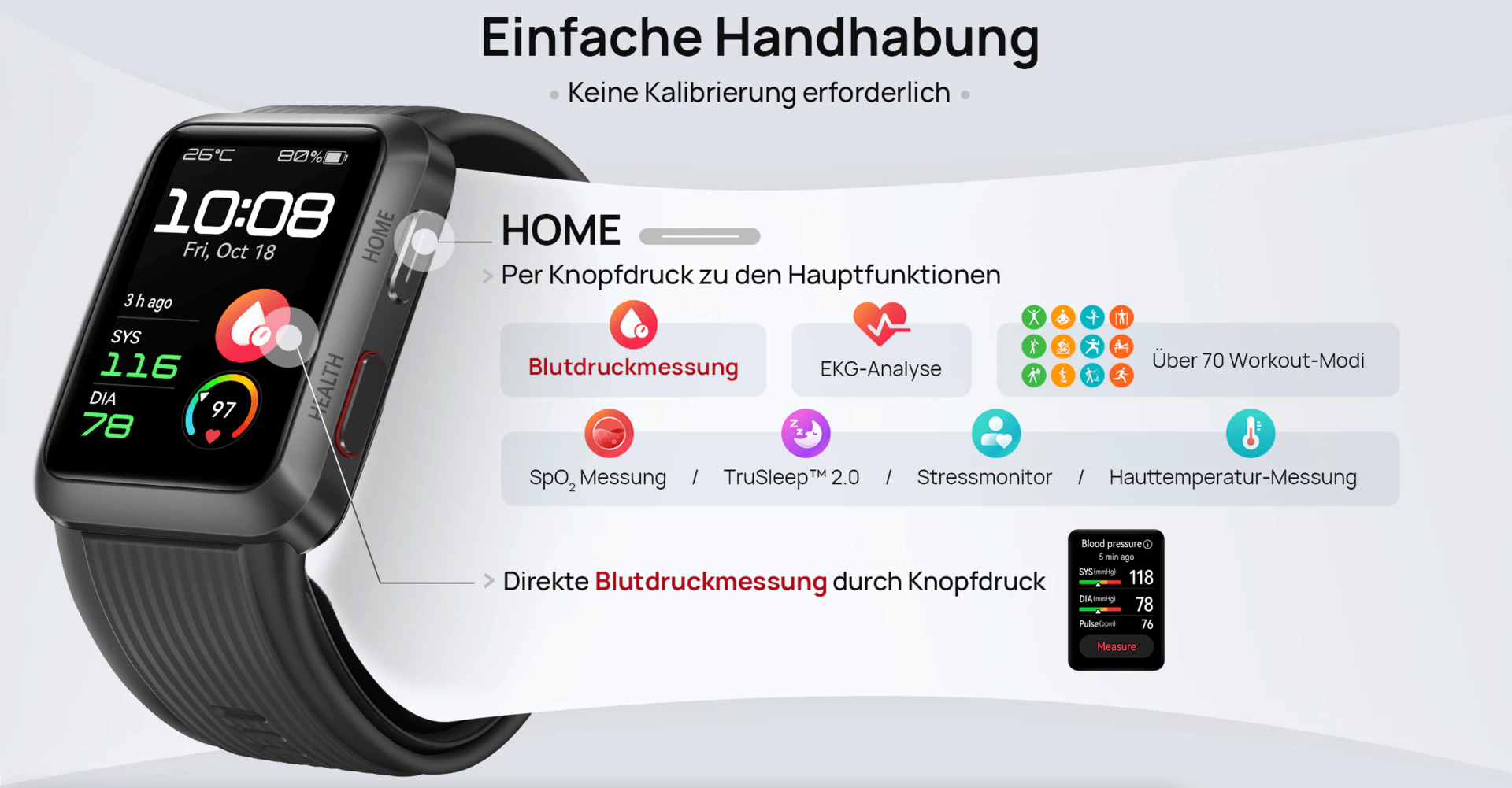 Das Purzeln der Preise in zahlreichen Shops weist eindeutig auf einen nahenden Black Friday hin. Ein interessantes Produkt mit attraktiven Discount findet sich im Huawei-Store in Form der Watch D. Die Smartwatch verfügt über zahlreiche Funktionen im Gesundheitsbereich, etwa ein integriertes EKG, SpO2-Messung (Sauerstoffsättigung im Blut) und eine Blutdruckmessung. Letzter Punkt macht das Produkt für viele User interessant, die ihren Blutdruck regelmäßig bzw. fortlaufend überwachen möchten.