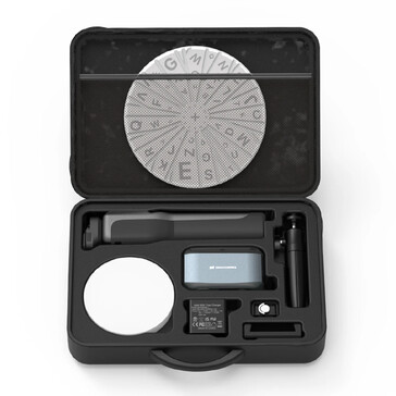 Neben dem üblichen Lieferumfang aus Ladegerät und Datenkabel liegen hier auch ein Stativ und ein Smart-Grip-Griff sowie eine Tasche für den Transport bei. Zudem ist auch ein Drehteller dabei, der beim Scannen von Objekten hilft.