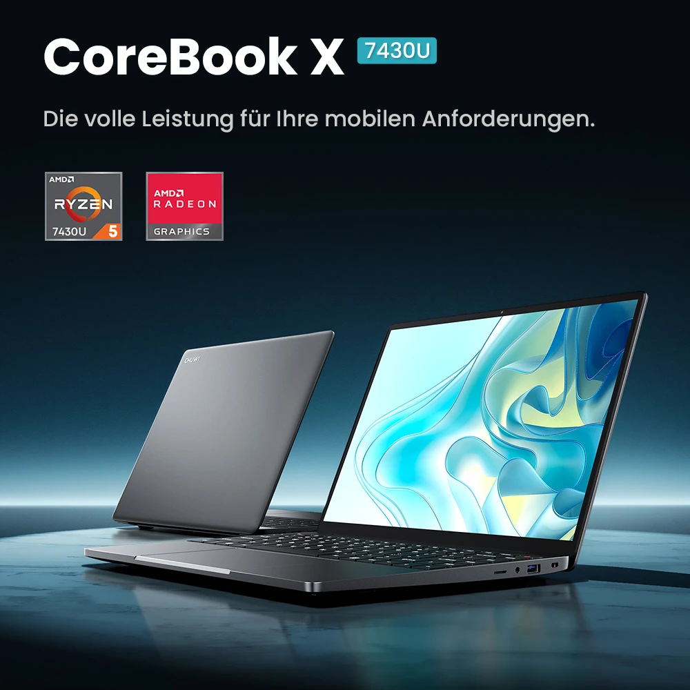 Angetrieben wird das CoreBook X vom AMD Ryzen 5 7430U. Die CPU bietet hohe Performance mit 6 Kernen, 12 Threads und einer maximalen Taktfrequenz von 4,3 GHz, bewältigt so mühelos auch anspruchsvollere Aufgaben. Dazu kombiniert der Hersteller 16 GB DDR4 RAM und eine 512 GB fassende NVMe PCIe SSD.