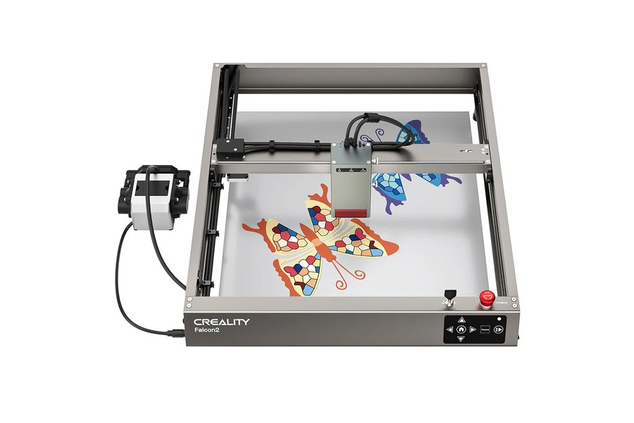 Der angebotene Creality Falcon 2 Lasergravierer ist mit einem 40 W starken Laser ausgestattet und laut Hersteller der erste seiner Art mit einer einstellbaren Lichtstrahlfunktion. Dank der hohen Leistung ist die Maschine für viele verschiedene Werkstoffe geeignet und kann z.B. 20 mm dickes Holz, 30 mm Acryl oder 0,15 mm Edelstahlbleche in einem Arbeitsgang schneiden. Hierbei legt der Falcon 2 mit 25.000 mm/min ein hohes Arbeitstempo an den Tag. Die Gravurgröße beträgt maximal 400 x 415 mm. Zu den weiteren Eigenschaften zählen unter anderem eine automatische Luftunterstützung, ein dreifaches Überwachungssystem und ein bidirektionaler Endschalter.