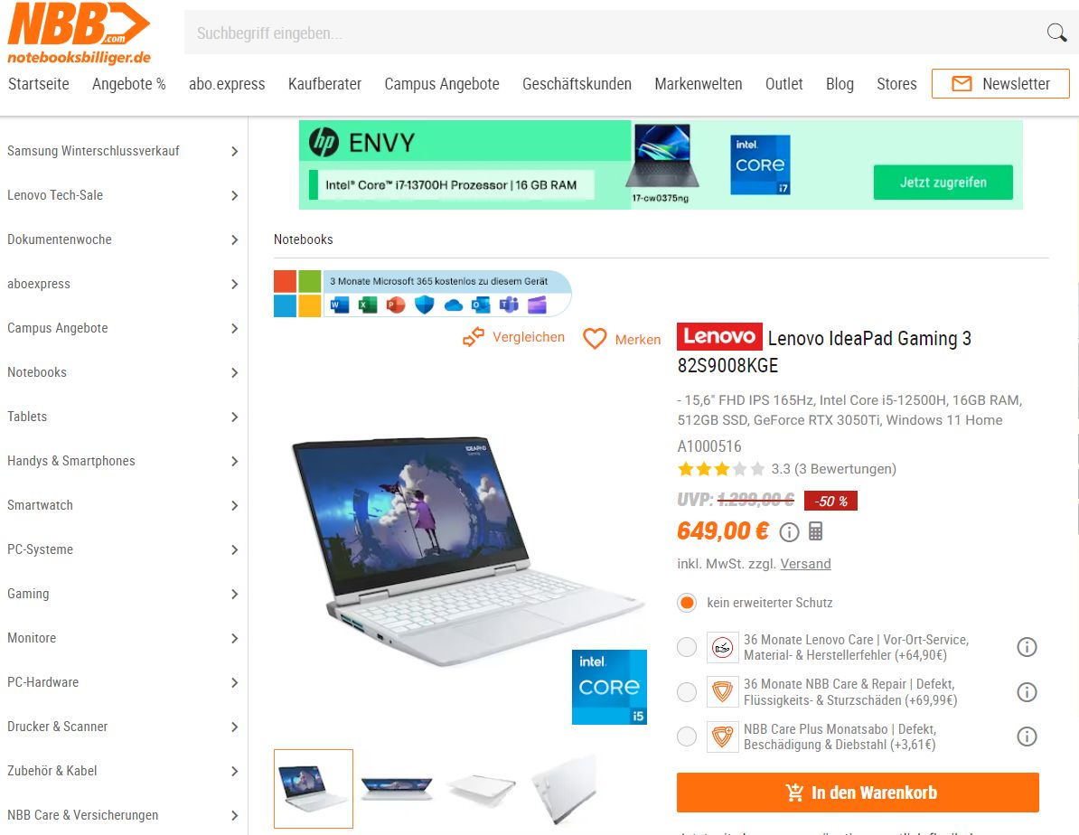 Derzeit bekommt man auch das Gigabyte G5 mit einer leistungsstärkeren RTX 4050 für einen noch etwas günstigeren Preis, allerdings besitzt das IdeaPad 3 das bessere Display, bleibt beim Gaming leiser und auch kühler.