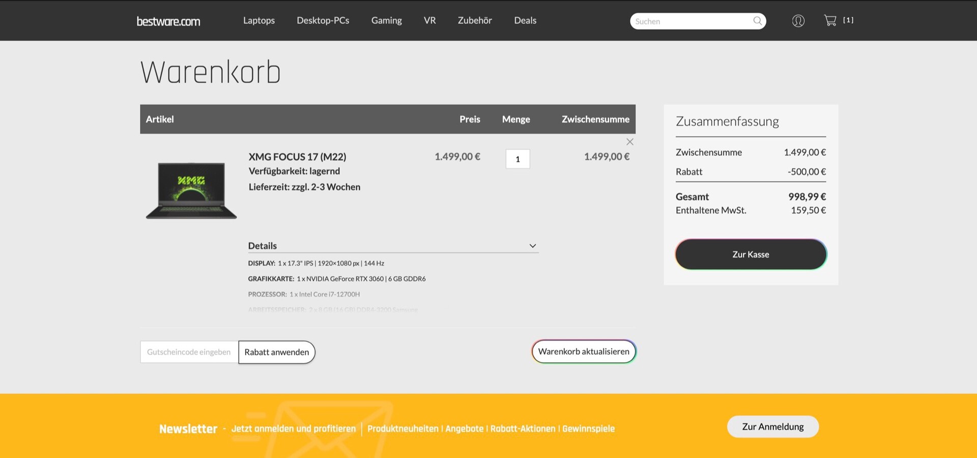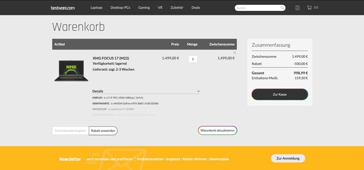 Notebookcheck ist nicht für Preisänderungen der Händler verantwortlich. Der Deal war zum Veröffentlichungszeitpunkt der News verfügbar, kann aber zeitlich oder mengenmäßig beschränkt sein.