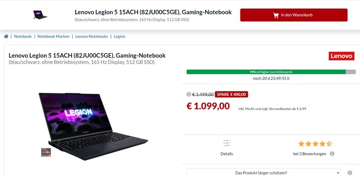 Ein Gaming-Laptop mit RTX-3070-Grafikeinheit zum geringen Preis gibts derzeit mit dem Lenovo Legion 5, das zudem auf einen AMD-Prozessor und auf ein 165 Hz schnelles 15,6-Zoll-Display setzt. Der solide Gamer kostet bei Alternate aktuell nur 1.099 Euro, was dem Allzeit-Bestpreis entspricht.