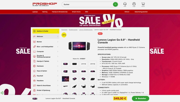 Der Lenovo Legion Go Gaming-Handheld wird aktuell bei Proshop für 549 Euro angeboten, der Versand ist kostenlos. Die unverbindliche Preisempfehlung liegt bei 799 Euro. Laut Preisvergleich handelt es sich dabei um den Allzeit-Bestpreis für den Gaming-Handheld, der aktuell ansonsten nicht unter 625 Euro zu finden ist. Damit erzielt das Gerät ein starkes Preis-Leistungs-Verhältnis.