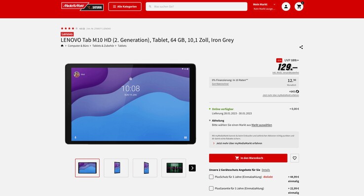 Das Lenovo Tab M10 HD der zweiten Generation kann aktuell bei Saturn für nur 129 Euro bestellt werden. Die unverbindliche Preisempfehlung liegt bei 199 Euro, im Preisvergleich ist das angebotene Modell mit 4 GB Arbeitsspeicher und 64 GB Flash-Speicher ansonsten nicht unter 169 Euro zu finden. Der Speicher kann durch eine microSD-Karte erweitert werden.