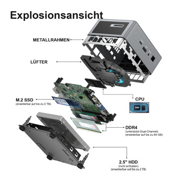 Ebenfalls an Bord ist die Intel Iris Xe für die Grafikausgabe. Sie ermöglicht die Nutzung von bis zu vier Monitoren, die über zweimal USB 4.0 sowie je einmal HDMI 2.0 und Mini-DisplayPort mit dem Geekom Mini IT11 verbunden werden können, sowie bis zu 8K-Ausgabe.