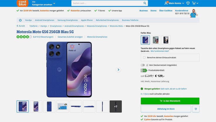 Trotz DRAM-Krise lassen sich am Smartphone-Markt noch Schnäppchen finden. Das jüngste Beispiel dafür ist das Motorola Moto G56 5G, das mit 8 GB Arbeitsspeicher und 256 GB Flash-Speicher in der Farbe Pantone Dazzling Blue derzeit bei Coolblue für nur 129 Euro angeboten wird, die Lieferung ist kostenlos. Laut Preisvergleich handelt es sich dabei um den Allzeit-Bestpreis für das Mittelklasse-Smartphone, das vergangenen Juni für einen Listenpreis von 249 Euro auf den Markt gekommen ist.