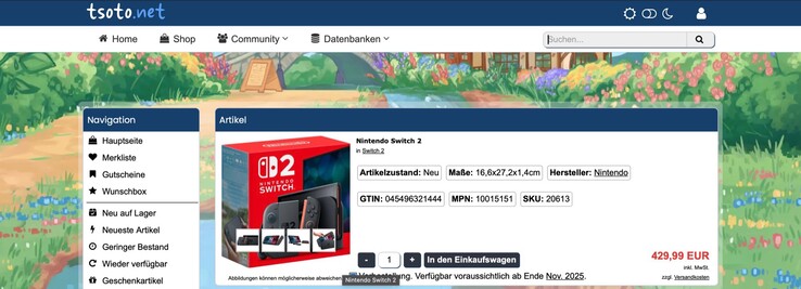 Die Nintendo Switch 2 ist im Juni für eine unverbindliche Preisempfehlung von 469,99 Euro auf den Markt gekommen. Nun wird die Konsole bei Tsoto zum Bestpreis von 429,99 Euro angeboten, der Versand ist kostenlos, allerdings kann der Händler die Konsole voraussichtlich erst Ende November liefern. Schneller geht es beim Bundle der Nintendo Switch 2 mit Mario Kart World, dass der Händler IngroTek auf ebay aktuell für 469,90 Euro anbietet, wenn der Gutscheincode "PRAESENT25" verwendet wird.