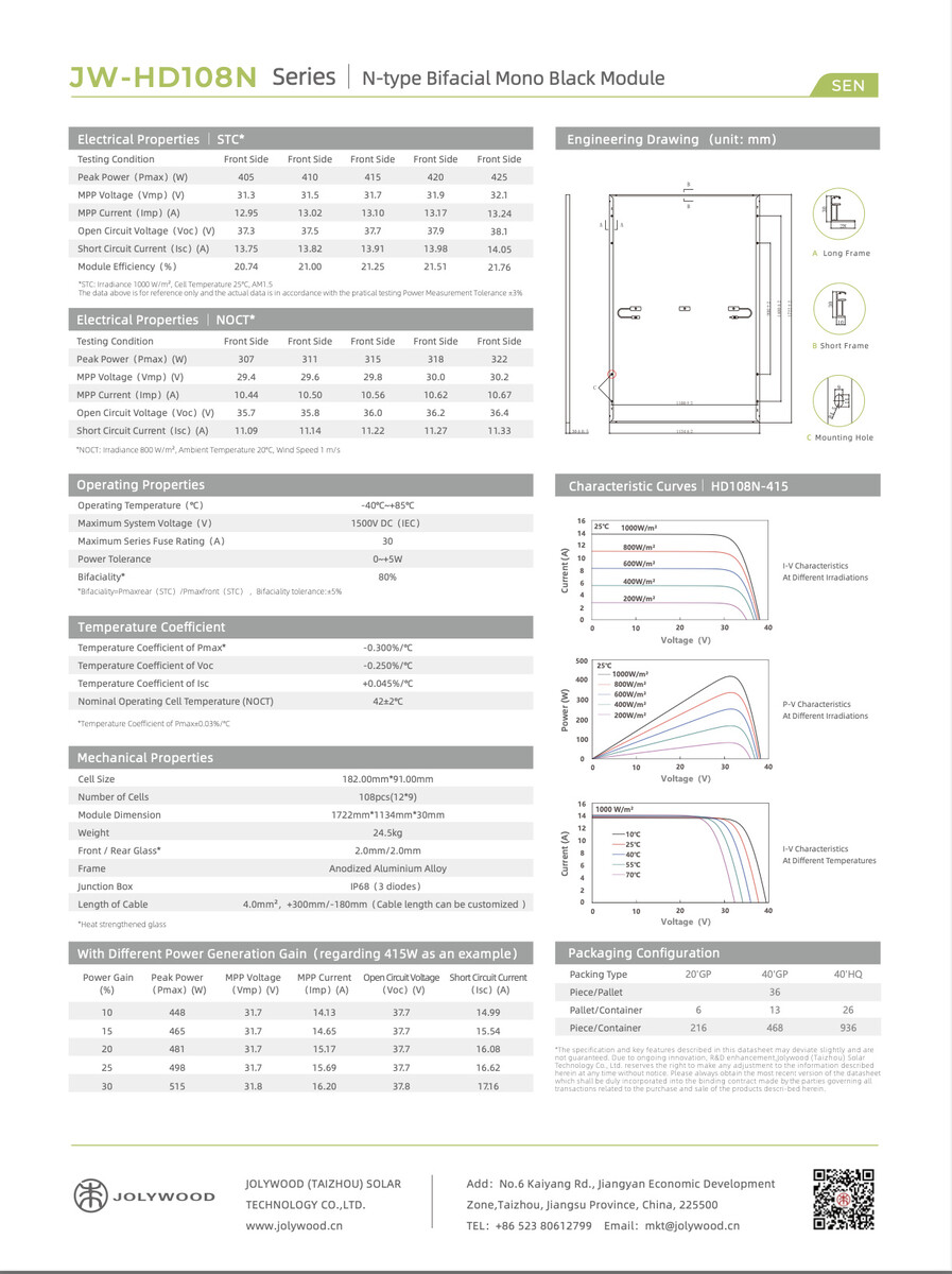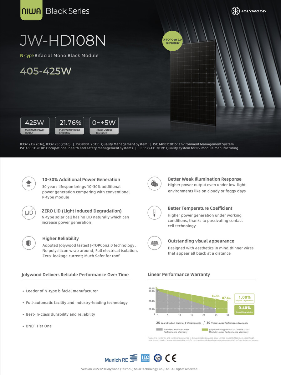 - Vier bifaziale Glas-Glas-Module à 410 Wp, Full-Black