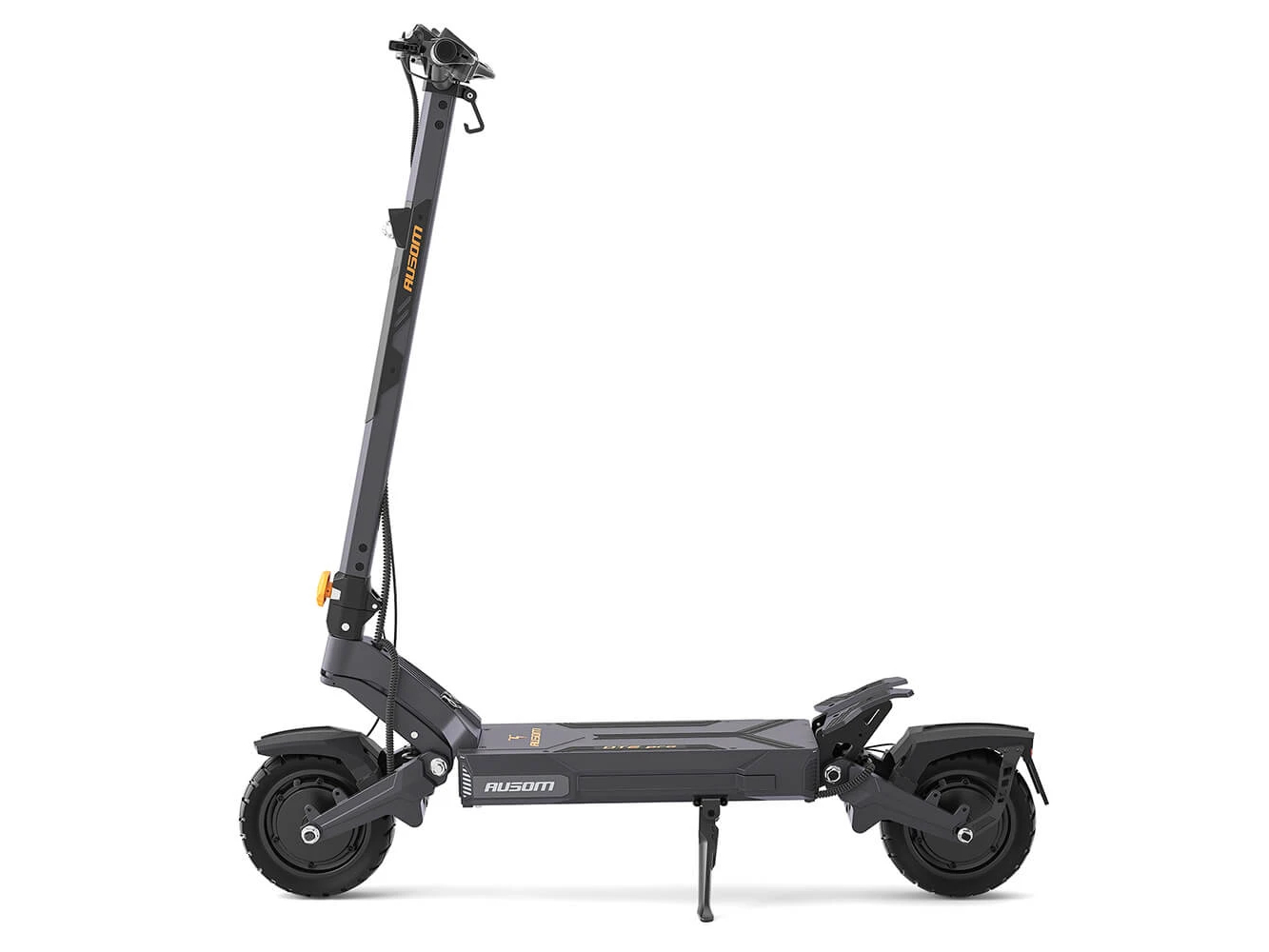 Mit dem Ausom DT2 Pro kommt man besonders rasant ans Ziel. Der E-Scooter wartet mit einer Spitzengeschwindigkeit von 68 km/h auf. Das verspricht viel Fahrspaß abseits öffentlicher Straßen, für die der Roller nicht zugelassen ist. Angetrieben wird er von gleich zwei Motoren mit jeweils üppigen 1.100 W Leistung.