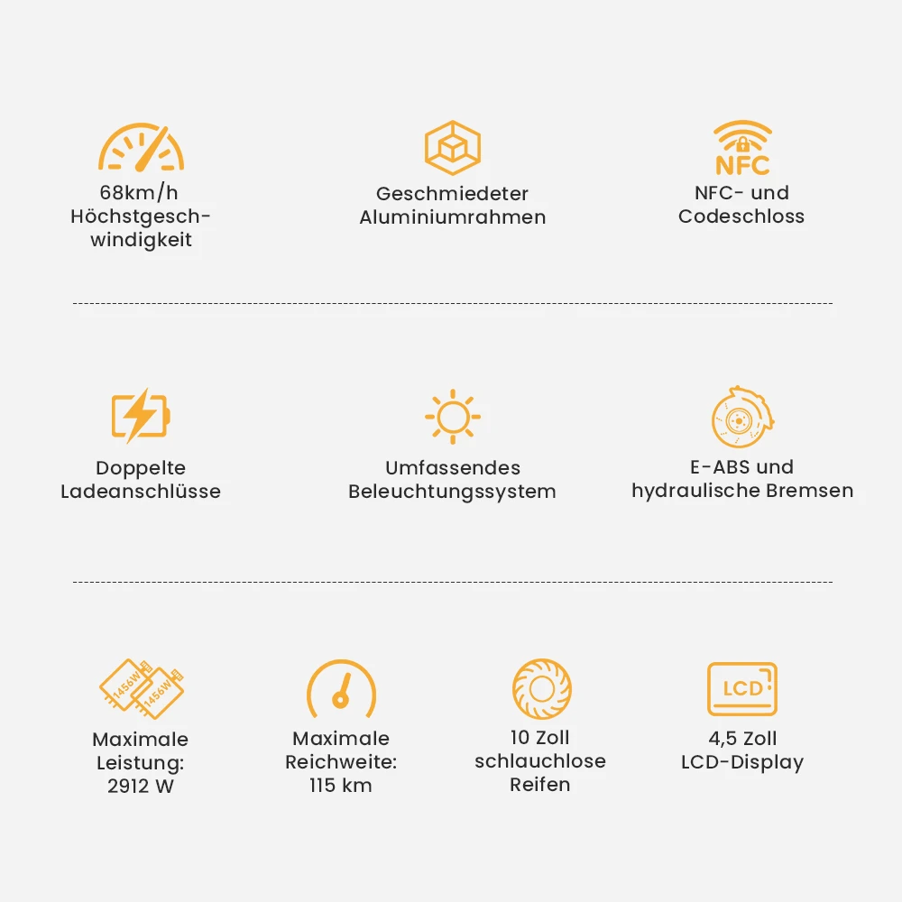 Elektroroller mit 68 km/h Höchstgeschwindigkeit