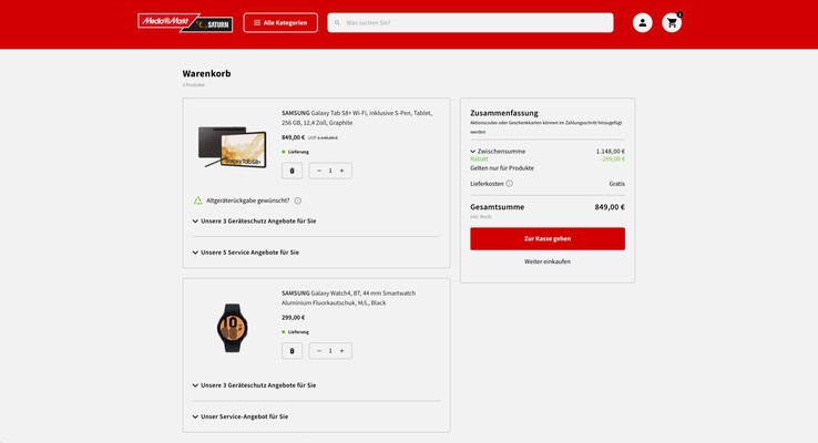Aktuell bieten Saturn und MediaMarkt ein Aktions-Bundle an, durch welches das Samsung Galaxy Tab S8+ mit 8 GB RAM und 256 GB Speicher, ein S Pen und die 44 mm Galaxy Watch4 für insgesamt nur 849 Euro bestellt werden können. Im Preisvergleich kostet das Tablet samt Stylus mindestens 788 Euro, die Smartwatch ist nicht für unter 150 Euro zu bekommen, sodass dieses Bundle 89 Euro spart.