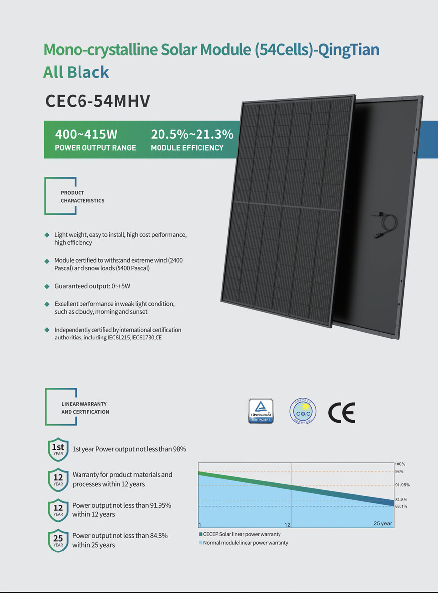 Die Abmessungen des Moduls betragen 1.722 x 1.134 x 30 mm bei einem Gewicht von 21,5 kg. Der Modulwirkungsgrad des Glas-Folie-Moduls ist mit 20,7 % geringer als bei modernen Glas-Glas-Modulen und auch die Leistung liegt eher im unteren Bereich, dafür ist der Anschaffungspreis entsprechend niedrig.