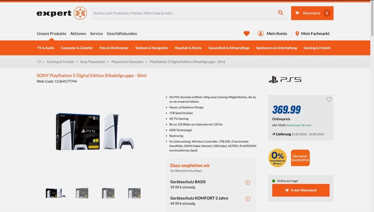 Für 369 Euro ergibt sich ein durchaus attraktives Preis-Leistungs-Verhältnis für die PlayStation 5 Slim Digital Edition, denn die Xbox Series X ist aktuell nicht unter 489 Euro zu finden. Die PlayStation 5 wird in jedem Fall mit einem DualSense-Controller und mit einer 1 TB fassenden SSD ausgeliefert, der Speicher kann durch eine handelsübliche M.2-SSD erweitert werden.