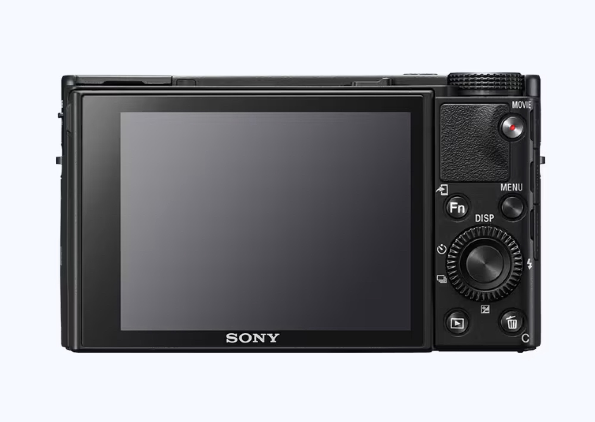 Das Objektiv erreicht bei 24 mm eine maximale Blendenöffnung von f/2.8, bei maximalem Zoom ist immerhin f/4.5 möglich. Die Kamera besitzt einen 3 Zoll Touchscreen mit 921.600 Bildpunkten, der um 180 Grad nach oben geklappt werden kann, sodass das Display auch für Aufnahmen aus der Hüfte oder für Selfies verwendet werden kann.