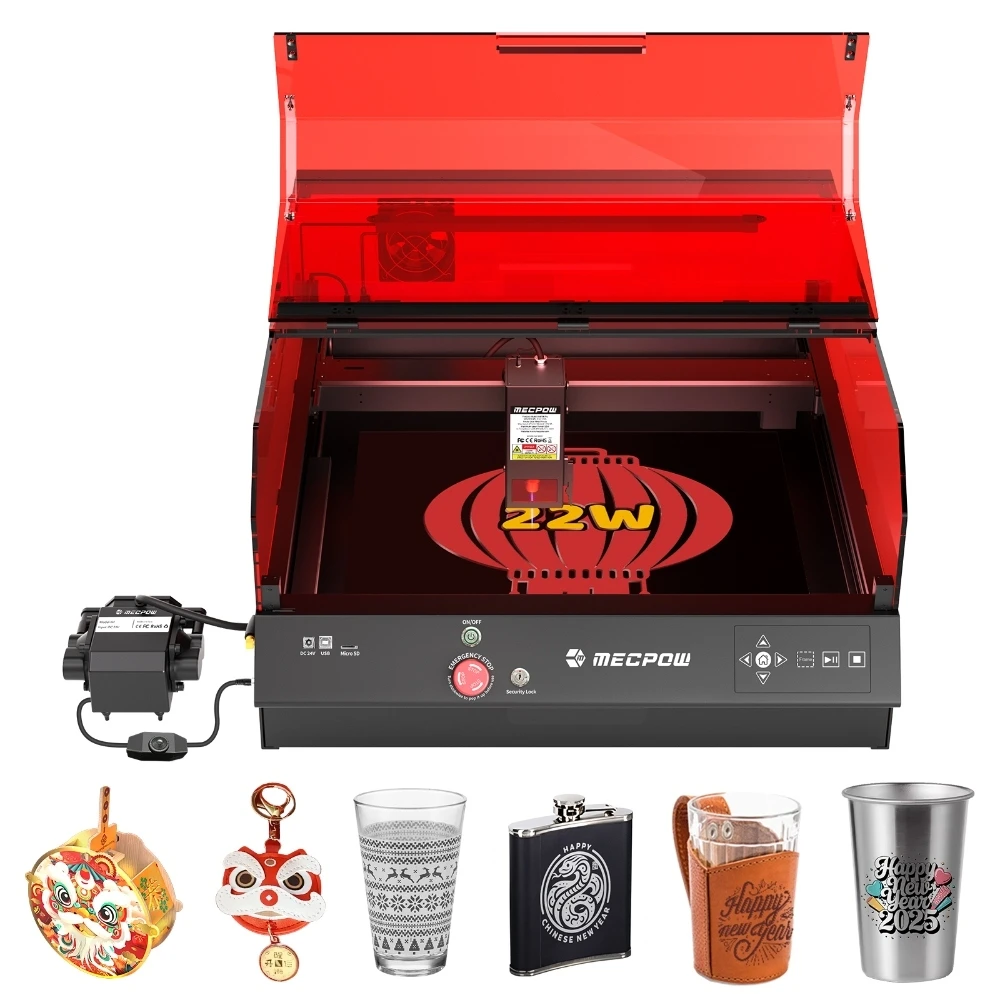 Der angebotene Mecpow X4 Pro ist mit einem 22 W starken Laser ausgestattet, mit dem beispielsweise 10 mm dickes Kirschholz, 6 mm dickes dunkles, undurchsichtiges Acryl oder 0,04 mm dicker Edelstahl in einem Durchgang bearbeitet werden können. Dazu verfügt das nach FDA Klasse 1 zertifizierte Gerät mit 41 x 40 cm über einen großzügigen Bauraum sowie eine umfangreiche Ausstattung rund um Komfort und Sicherheit. Dazu zählen unter anderem eine Sicherheitsverriegelung des Deckels und eine eingebaute Kamera.