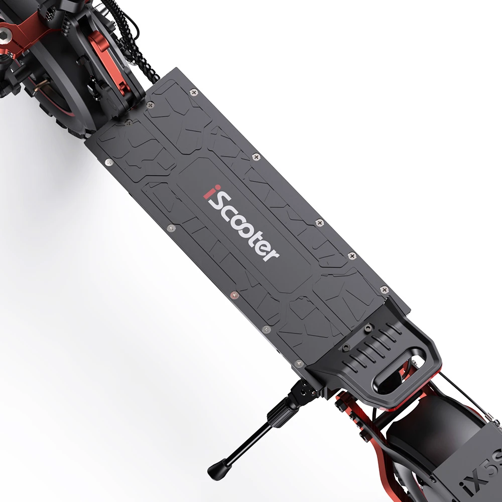 Eine ABE für den deutschen Straßenverkehr weist der iScooter iX5S leider nicht auf. Dafür macht sich der Elektroroller bei Fahrten auf Privatgelände hervorragend, auch bei schwierigerem Untergrund. Der E-Scooter ist geländetauglich, da er unter anderem mit 11 Zoll großen Offroad-Luftreifen ausgestattet ist. Ebenfalls hervorragend auf unebenem Terrain macht sich die Doppelfederung aus einem hydraulischen Stoßdämpfer vorne sowie einem Stoßdämpfer an der Hinterradaufhängung.