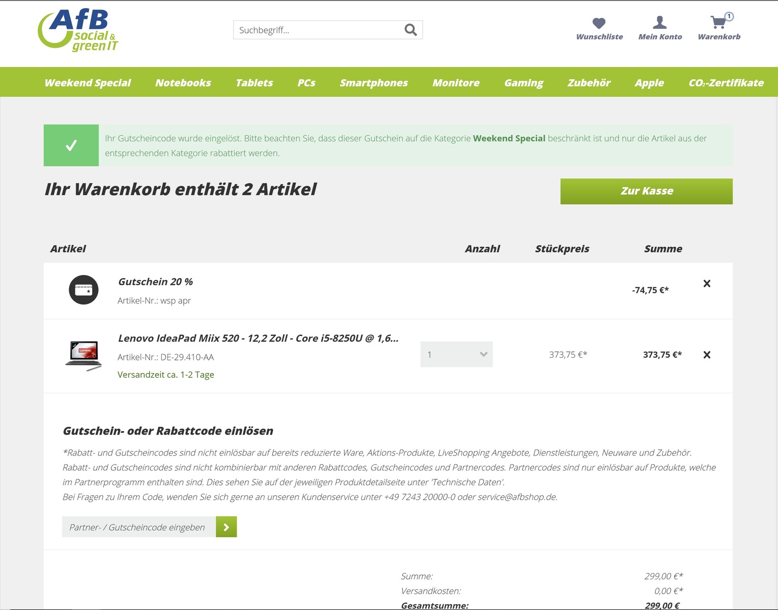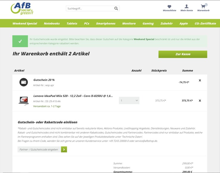 Das 12,2 Zoll große Windows-Tablet Lenovo Miix 520 ist eine ernstzunehmende Surface Pro Alternative, die man aktuell mit 16 GB RAM, inklusive Tastatur-Cover und Eingabestift für außerordentlich günstige 299 Euro im Weekend-Special beim AfB-Shop bestellen kann. Um den Rabatt zu erhalten, löst man den Gutschein "weekend23" im Warenkorb ein.