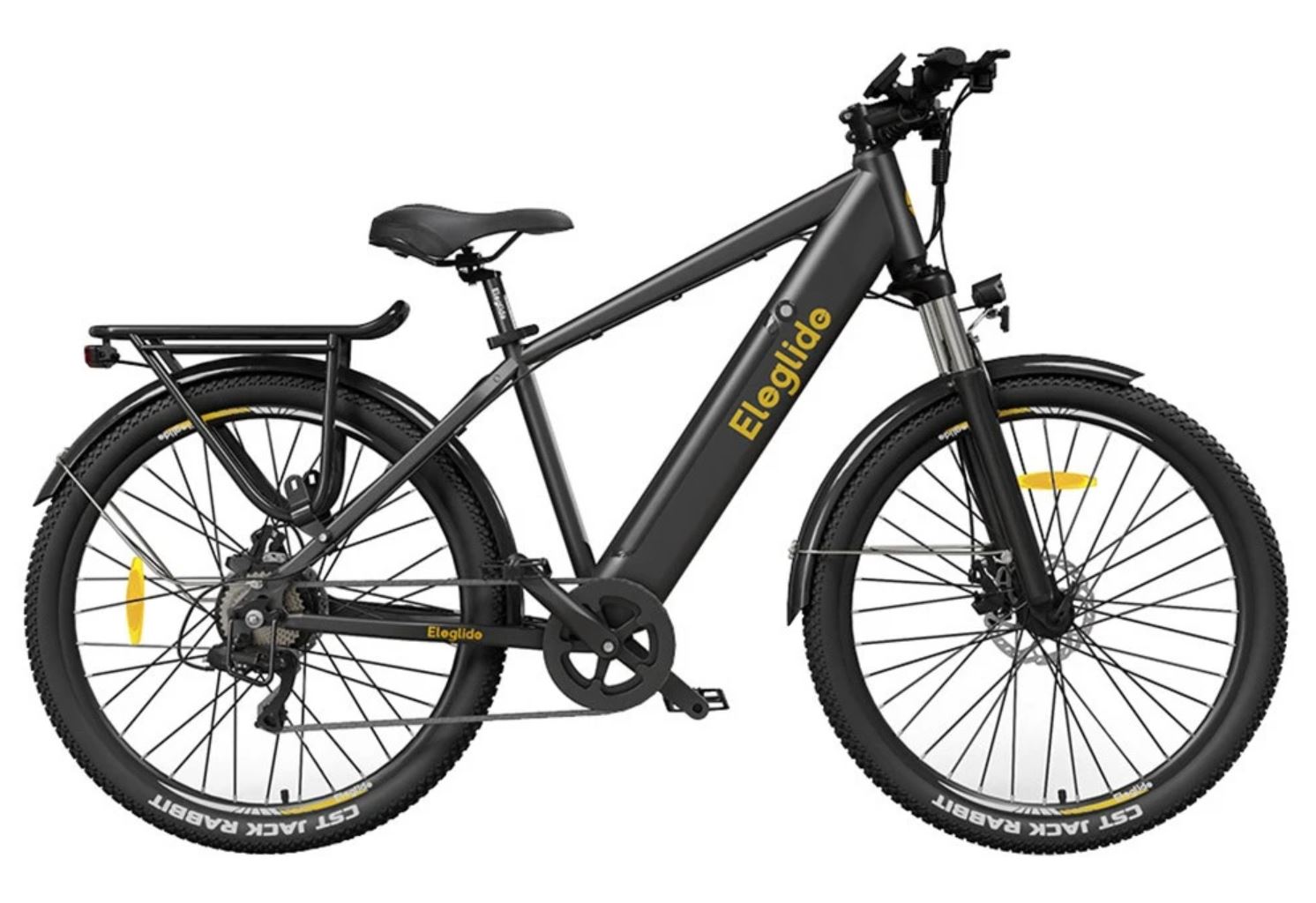 Gefahren wird auf 27,5-Zoll-CST-Luftreifen, gebremst mit zwei Scheibenbremsen. Für den Komfort sind unter anderem ein bequemer Sattel, eine 7-Gang-Schaltung von Shimano sowie eine hydraulische Federgabel mit Sperre am Eleglide T1 verbaut. Dazu kommt eine Beleuchtung samt Reflektoren. Das alles gibt es derzeit bei Geekbuying für nur 719 Euro.