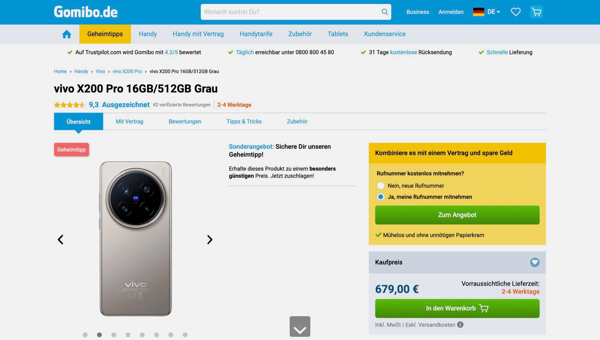 Das Vivo X200 Pro mit 16 GB Arbeitsspeicher und 512 GB Flash-Speicher in der Farbe "Titanium" wird aktuell bei Gomibo für nur 679 Euro angeboten. Laut Preisvergleich handelt es sich dabei um den Allzeit-Bestpreis für das Kamera-Flaggschiff-Smartphone, das Anfang 2025 für 1.199 Euro auf den Markt gekommen ist, und das bisher nie für unter 797 Euro zu bekommen war.