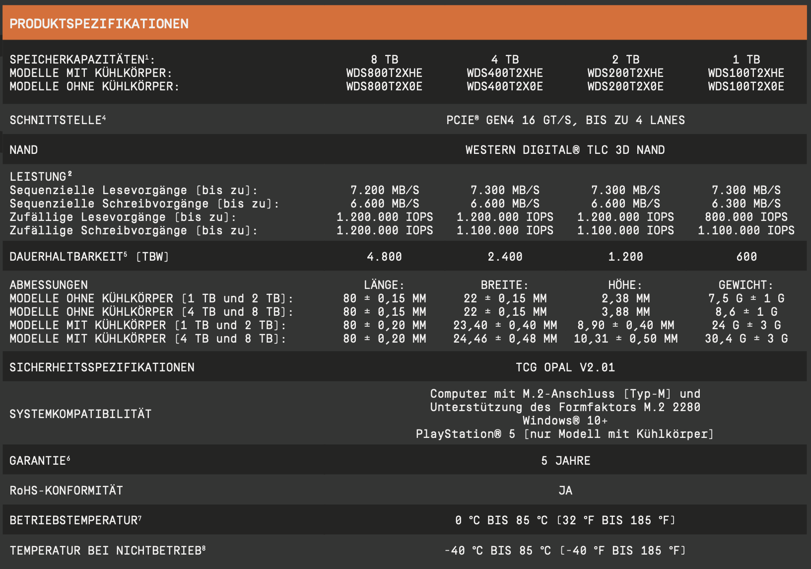 Alle drei genannten Varianten der WD Black SN850X erreichen beim sequenziellen Schreiben bis zu 6.600 Megabyte pro Sekunde, beim Lesen sind es starke 7.300 MB/s. Nur das 8TB fassende SSD-Spitzenmodell liest in der Spitze 100 MB/s langsamer, was im Alltag niemanden auffallen dürfte.