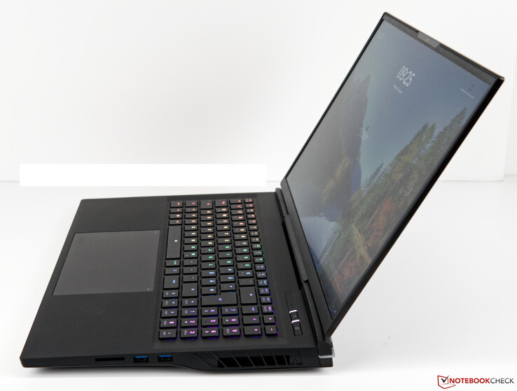 Der robuste 17-Zöller bietet eine für die Geräteklasse lange Akkulaufzeit von rund 9 Stunden, viele Anschlüsse inklusive 2.5-GBit-RJ45, einen G-Sync kompatiblem HDMI-2.1-Port sowie einen Anschluss für eine externe Wasserkühlung, welche vor allem auch die Geräuschkulisse deutlich senkt.