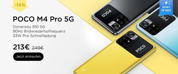 Das Xiaomi Poco M4 Pro 5G war bei Notebookcheck.com im Test und hat "gute" 81 Prozent abgeliefert. Unser Fazit zum Einsteigerhandy, bei dem es sich mit dem Poco M4 Pro 5G um die globale Variante des Redmi Note 11 5G handelt ist kurz und knapp: Das Xiaomi Poco M4 Pro 5G erfindet das Rad nicht neu, bietet aber viel Ausstattung für wenig Geld. Über Goboo ist das Poco M4 Pro 5G von Xiaomi momentan mit 6/128 GB besonders preiswert erhältlich. Das Poco M4 Pro 5G 6/128 GB zum Bestpreis kostet dort in Power Schwarz inklusive 10 Euro Rabattgutschein nur 203 Euro. Laut Preisportalen wie Idealo ist das aktuell der günstigste Sparpreis für das Poco-Handy und auch nochmals etwas günstiger als der Poco M4 Pro-Preiskracher von gestern.