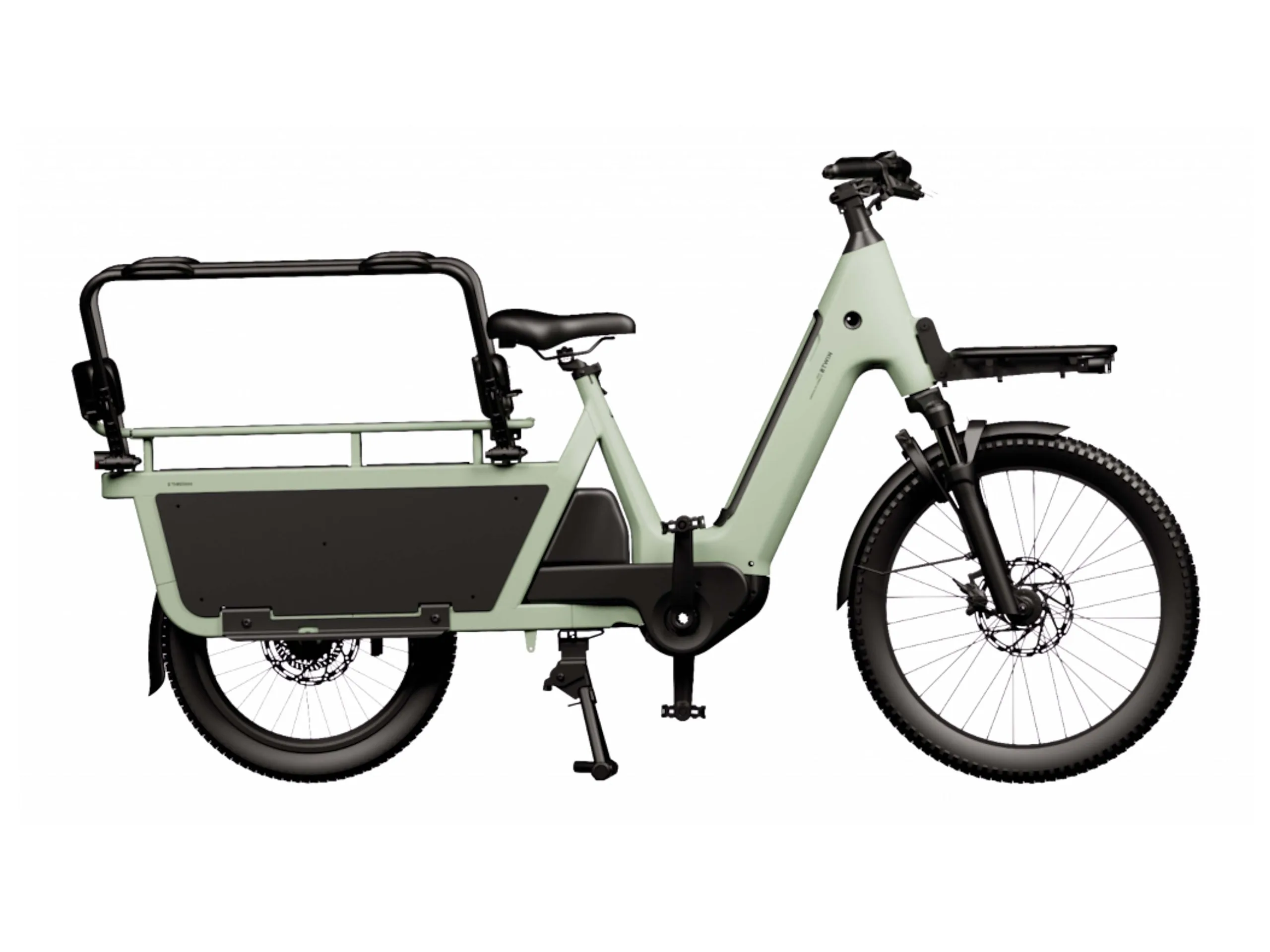 Das Decathlon E-Three 900 ist offiziell - zumindest an der Existenz des Fahrrads dürfte kein Zweifel bestehen, so ist auch schon ein Werbevideo aufgetaucht. Allerdings ist eine ganz offizielle Vorstellung mit allen Spezifikationen noch nicht erfolgt. Auf der Seite des Cargo Bike Festival sind aber zumindest einige Produktspezifikationen zu sehen. Bestimmte Angaben fehlen allerdings, konkret so etwa zum Gewicht, welches bei deutlich über 30 Kilogramm und wahrscheinlich bei knappen 40 Kilogramm liegen dürfte. Das Fahrrad ist ein Longtail, Gepäck wird also auf einem überlangen Gepäckträger transportiert und nicht etwa in einem Gepäckkorb an der Front. Ein Frontgepäckträger ist aber vorhanden, damit lässt sich der Einkauf selbst dann transportieren, wenn die Kinder auf dem Rücksitz mitfahren. Der Hinterreifen ist mit 20 Zoll relativ klein, damit lässt sich Last aber auch etwas näher am Boden transportieren, was der Kippstabilität zuträglich ist.
