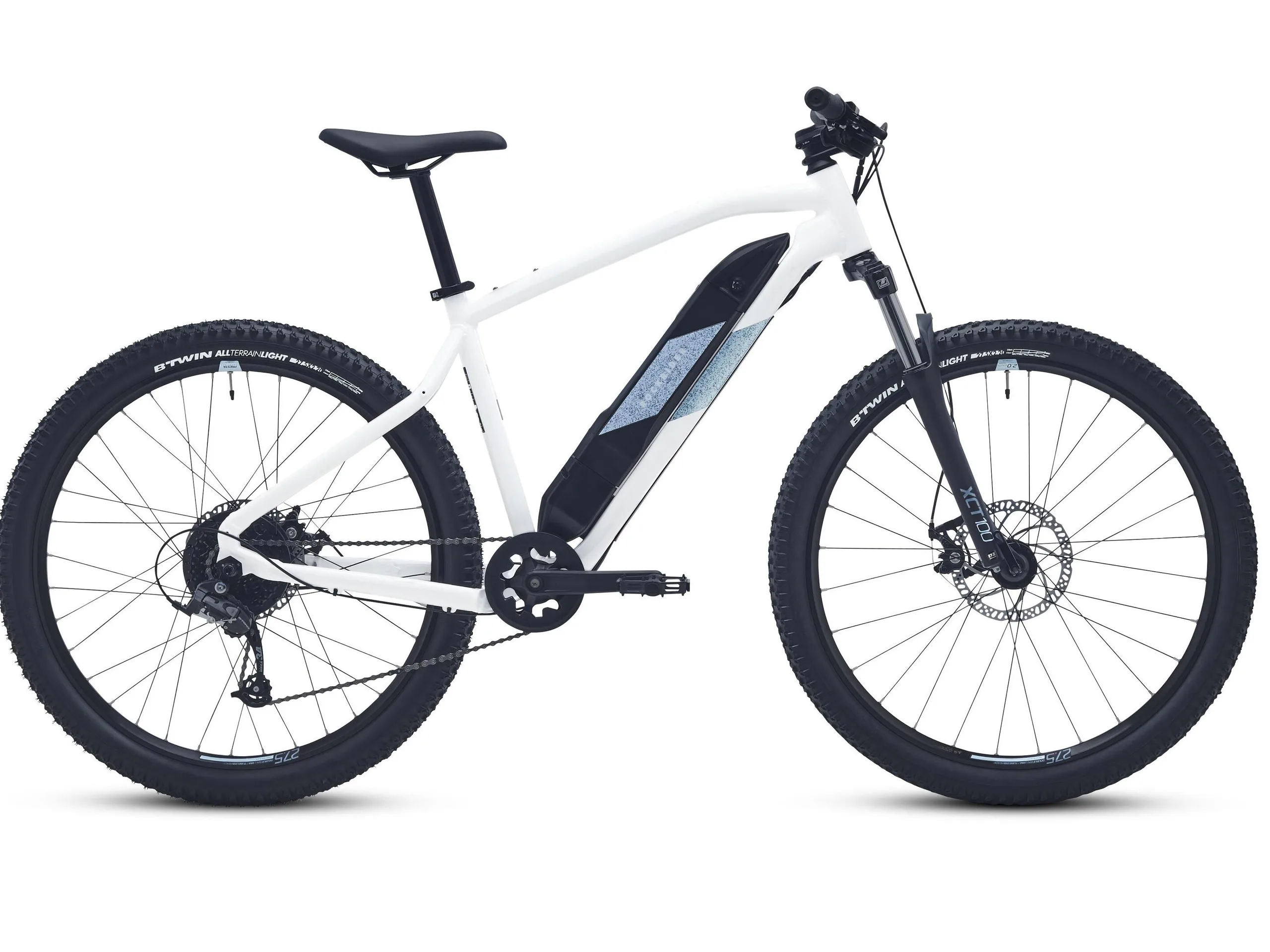 Der Rahmen des Fahrrads besteht aus Aluminium, dabei wird das Gewicht auf zwischen 21,5 Kilogramm für die kleine S-Version angegeben, die XL-Variante soll 21,9 Kilogramm auf die Waage bringen. Verbaut ist eine Suntour XCT 30-Federgabel, allerdings fehlt ein Dämpfer - es handelt sich also um ein Hardtail. Aufgezogen sind Rockrider All Terrain Light-Reifen mit 2,2 Zoll, dabei werden bis zu 2,5 Zoll breite Reifen unterstützt. Genutzt werden Tektro TKD68-Scheibenbremsen. Dabei handelt es sich um mechanische Scheibenbremsen mit nur einem Kolben und 180 Millimeter großen Bremsscheiben vorne und hinten. Eine Microshift MS25-Gangschaltung mit 8 Gängen ist vorhanden.