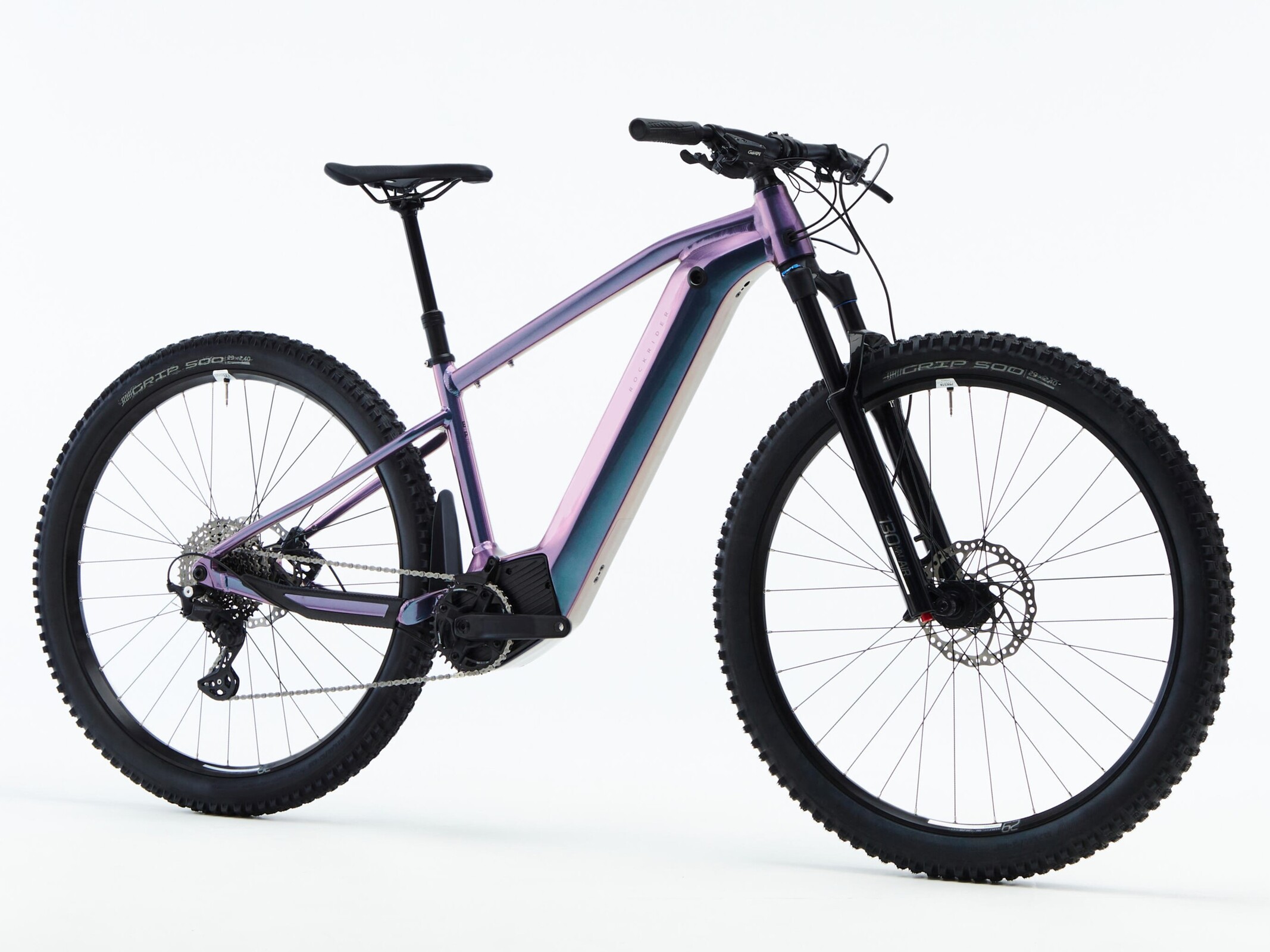 Verbaut ist ein Ergo 900-Farbdisplay, welches auch über Bluetooth mit anderen Geräten Kontakt aufnehmen kann. Das Gewicht in Größe M wird auf 22 Kilogramm beziffert, die Größen L und XL sind dann jeweils 200 Gramm schwerer. Diese Angabe gelten jeweils ohne Pedale. Verbaut ist eine X-Fusion RC32-Federgabel mit einem Federweg von 130 Millimetern, die Shimano Deore-Schaltung bringt 10 Gänge und auch einen Abwurfschutz mit. Die hydraulischen Scheibenbremsen stammen von Tektro, dabei verzögern die Tektro M530-Bremsen mit jeweils vier Kolben 180 Millimeter große Bremsscheiben. Rockrider Grip 500-Reifen sind aufgezogen.