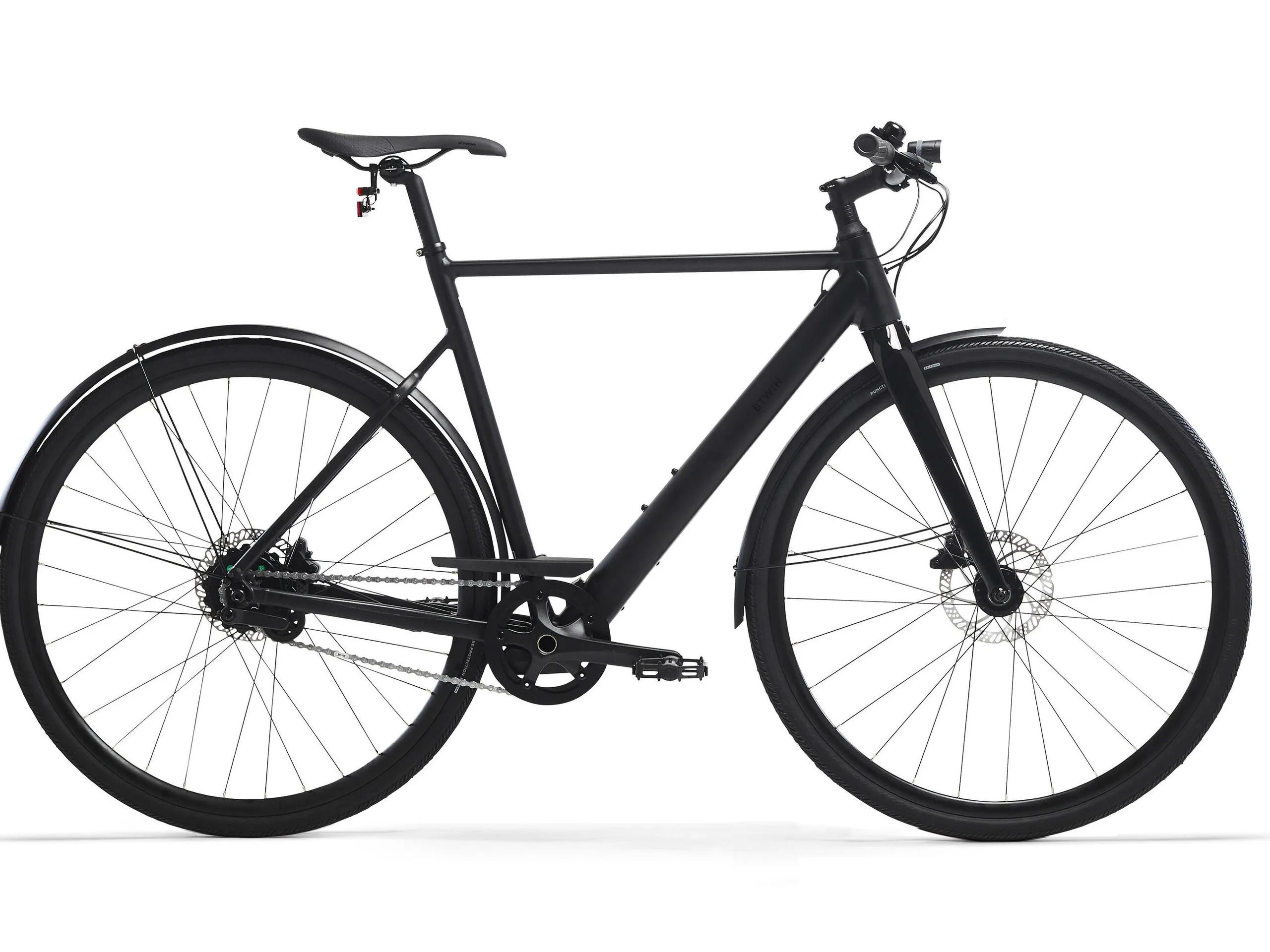 Verbaut sind hydraulische Tektro-Scheibenbremsen vom Typ TKR R280. Das Fahrrad bringt einen Aluminiumrahmen mit und in Größe M 15 Kilogramm auf die Waage. Die maximale Belastbarkeit wird mit 125 Kilogramm angegeben. Schutzbleche sind vorhanden und auch ein Beleuchtungssystem zählt zur Ausstattung.