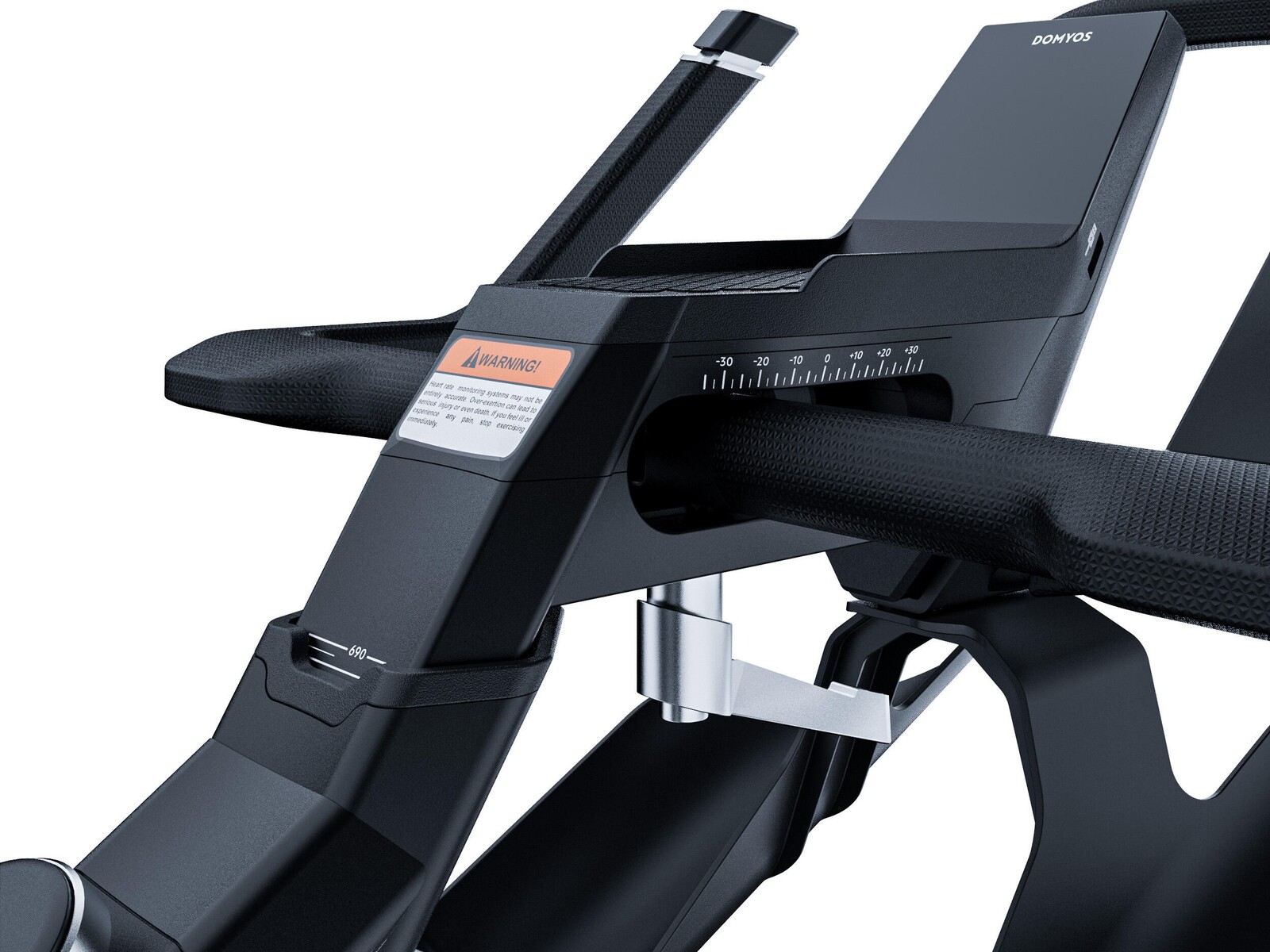 Ab Werk ist ein TFT-Display verbaut, dass über Dauer, Strecke, Geschwindigkeit, Trittfrequenz (RPM) und Kalorienverbrauch informiert. Zusätzlich kann der Heimtrainer mit verschiedenen Apps verbunden werden. Decathlon bietet die eigene Domyos E-Connected App an. Das Rad kann aber auch mit Zwift und Kinomap verbunden werden. Für die Unterhaltung soll es auch einen Tablet-Halter geben, in der Nähe sitzt ein USB-Anschluss.