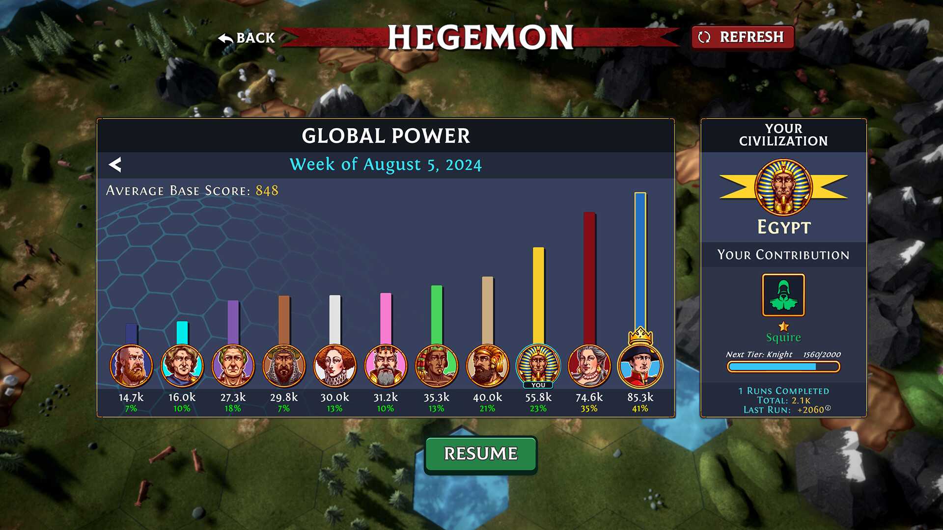 Neben dem frei konfigurierbaren Einzelspielermodus bietet Hexarchy tägliche und wöchentliche Herausforderungen, einen Ranglistenmodus sowie Mehrspielerpartien für bis zu zehn Spieler mit plattformübergreifendem Matchmaking. Besonders erwähnenswert ist der Hegemoniemodus: ein wöchentliches, fraktionsbasiertes Event, bei dem Spielerentscheidungen den Verlauf der Welt beeinflussen.