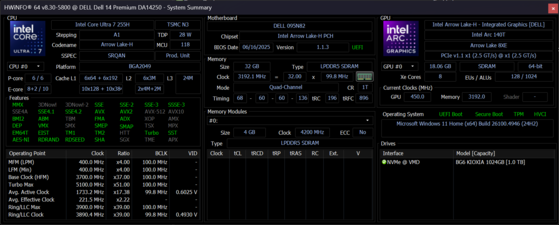| Dell Pro 14 Premium Intel Core Ultra 7 268V ⎘ Intel Arc Graphics 140V ⎘ 32 GB RAM, 1024 GB SSD | Bestpreis 1579.89€ playox.de 2. 1593.17€ playox (AT) 3. 1593.36€ büroshop242500 USD | 1.3 kg | 17.95 mm | 14.00" 2880x1800 243 PPI OLED | |