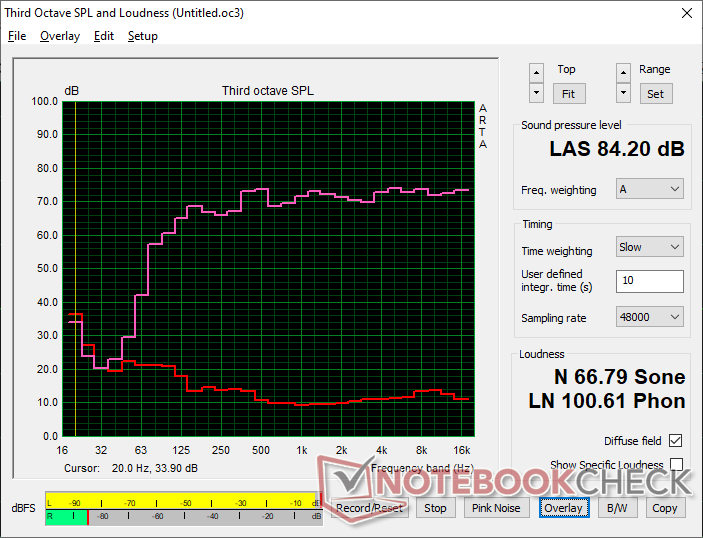 (+) | Die Lautsprecher können relativ laut spielen (84.2 dB)