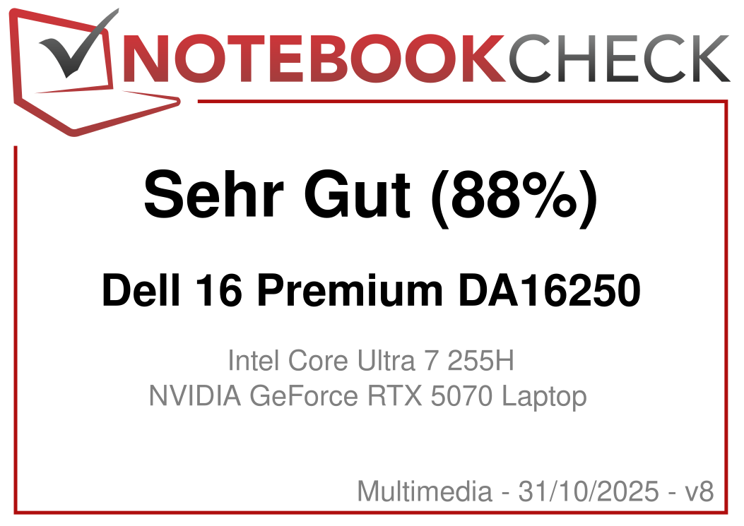 | Dell 16 Premium DA16250 Intel Core Ultra 7 255H ⎘ NVIDIA GeForce RTX 5070 Laptop ⎘ 32 GB RAM, 1024 GB SSD | Amazon: 2.899,00 € Geizhals Suche | 2.3 kg | 18.7 mm | 16.30" 3840x2400 278 PPI OLED | |
