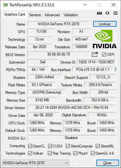 | 84.8 % v7 (old) | 08 / 2020 | Alienware m15 R3 P87F i7-10750H, GeForce RTX 2070 Mobile | 2.3 kg | 19.9 mm | 15.60" | 1920x1080 | |